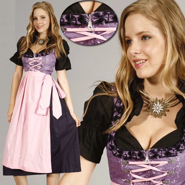 Art. Nr.: F6817 3tlg. Dirndl Bluse und Schürze Trachtenmode Balkonett Dirndl Bluse und Schürze Trachtenmode Oktoberfest Material: 3 teiliges Balkonett-Dirndl Das Oberteil ist mit Baumwolle ausgefüttert und der Ausschnitt ist rundherum mit zweifarbigen (Dunkelblau/violett )handgefertigten Goscherlrüsche verziert Vorne ist verdeckter Reißverschluss Vorne sind silberfarbene Miederhacken und Satinbandschnürung um die Weite individuell zuregulieren Der Rock und die Schürze sind in Falten gelegt Die Schürze hat lange und breite Bänder, so dass die Schleife vorne oder seitlich getragen werden kann Die Dirndlbluse ist mit elastischem Gummiband unter dem Saum sowie an den Ärmeln eingenäht Feine breite Rüsche vom selben Stoff verziert um den Nackenbereich Mit dem verstellbaren Tunnelzug kann man die Ausschnittstiefe individuell einstellen Material: Oberteil:%60 Baumwolle % 40 Satin Rock:%100 Baumwolle Bluse:%100 Baumwolle Schürze:%100 Baumwolle Futter:%100 Baumwolle Farbe: Kleid:Violett / Dunkelblau Bluse:Schwarz Schürze:Pink Futter:Weiss Laenge:120 cm !! Ein wahrer Hingucker fuer's naechste Trachtenfest/Oktoberfest !! Taillenumfang von Mieder, Roecke und Kleider: