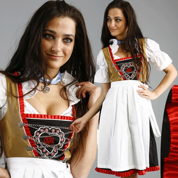 Das Dirndl besteht aus dem Kleid-der Bluse-und der Schürze